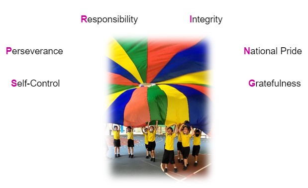 The core values for the school reflect what we desire E’Lights to internalise. “The core values (Self-Control, Perseverance, Responsibility, Integrity, National Pride, Gratefulness) are fundamental for a person of good character and a useful citizen of Singapore. They guide students to discern between right and wrong, help them to make responsible choices and become more aware of their roles in society.”
